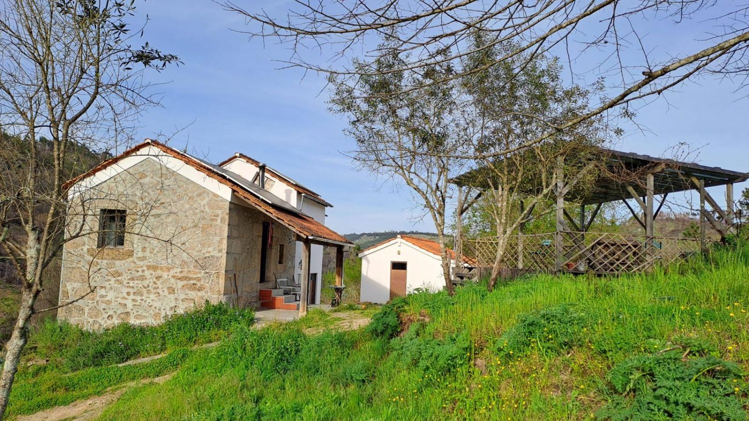 Propriedade Exclusiva com 5 Hectares, Vista Rio Mondego – Um Refúgio Raro na Natureza Se procura um lugar único, com privacidade total, abundância de água, vistas deslumbrantes e todo o potencial para turismo rural ou residência de sonho… então esta propriedade é verdadeiramente imperdível. Situada a poucos minutos da aldeia de Vila do Mato, esta quinta com 5 hectares totalmente privados oferece um ambiente natural incomparável, onde o som da água, a vista sobre o Rio Mondego e o encanto dos socalcos agrícolas criam um cenário de pura tranquilidade. Duas Casas Prontas a Habitar – Conforto e Autonomia A propriedade dispõe de três edifícios: casa principal, casa de hóspedes e grande garagem/armazém, oferecendo espaço, versatilidade e inúmeras possibilidades. Casa Principal Elegante, acolhedora e com vista panorâmica: Cozinha equipada em open-space com sala de estar e jantar 2 quartos com bastante luminosidade 2 casas de banho completas Adega/arrumos 2 fogões a lenha para ambiente e conforto Grande pérgola coberta ideal para refeições ao ar livre Vista aberta para o Rio Mondego e para os socalcos da quinta Energia quase autossuficiente com 12 painéis solares e bateria de armazenamento. Casa de Hóspedes Perfeita para alojamento turístico, família ou amigos: 2 divisões que podem servir como quartos Adega habitável com fogão (pode ser transformada em terceiro quarto) 2 fogões a lenha Entrada independente e total privacidade ? Um Paraíso Hídrico – Água em Abundância Todo o Ano Uma das maiores mais-valias desta propriedade: Abastecimento direto de uma mina de água privada Poço com água permanente 2 cisternas (uma para águas pluviais, outra para água do poço) Pequeno rio que atravessa a quinta 8–9 meses por ano Lago principal alimentado pelo rio Segundo lago natural Excelentes condições para agricultura biológica, projeto turístico ou vida sustentável ? Natureza Autêntica – Socalcos, Árvores de Fruto e Sem Eucaliptos A propriedade oferece: Cerca de 30 oliveiras, videiras, macieiras, figueiras, pessegueiros e outras Socalcos férteis e bem estruturados Carvalhos centenários, salgueiros, loureiros, tílias e mimosas Ideal para quem valoriza biodiversidade, sombra natural e um ambiente ecológico. Aqui vive-se a natureza a partir da porta de casa: Rio Mondego a 3 minutos a pé Rio Seia e uma belíssima praia fluvial a 5 minutos Cascata natural a 10 minutos a pé Três acessos possíveis: dois pela aldeia e um pela N230 Acesso à casa preparado para veículos 4×4 Um verdadeiro paraíso para amantes da natureza, caminhadas, natação em rio, pesca e tranquilidade absoluta. Ideal para: Projeto turístico (AL, Eco-lodge, retiro, glamping, agricultura biológica) Quem procura autonomia e vida sustentável Família que deseja um refúgio seguro, privado e em contacto total com a natureza Investidores à procura de propriedade única e com grande potencial